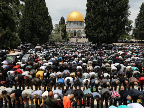 Filistinliler, cuma namazını İsrail’in kısıtlamaları nedeniyle kapatılan Mescid-i Aksa’nın çevresinde kıldı